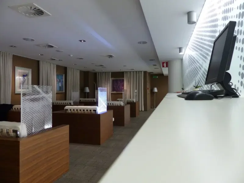 Renovation of the airport’s premium lounge. Contemporary materials, calm tones, and efficient spacial organization ensure a